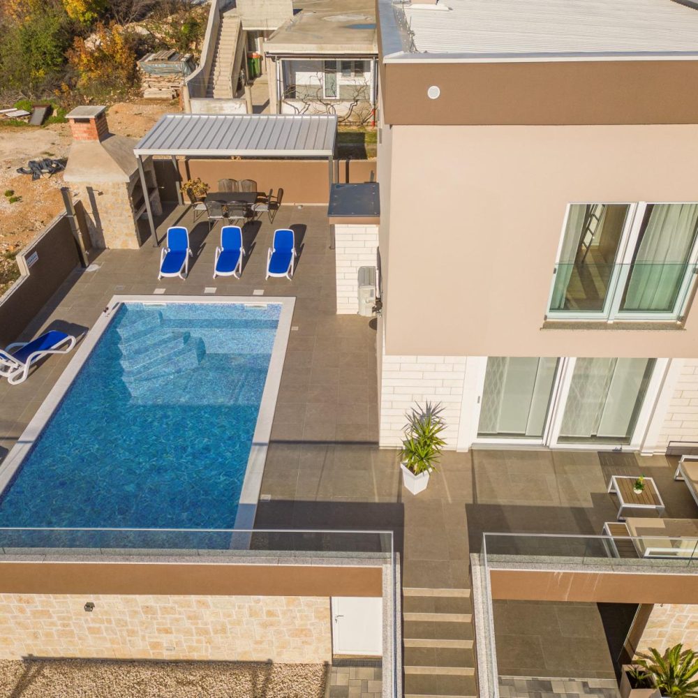 Naša villa je novoizgrađeni objekt za 6 osoba i sve što se u njoj nalazi je novo i rađeno po mjeri kako bi se sve savršeno uklopilo. Bazen, roštilj, igraonica, moderni uređaji…